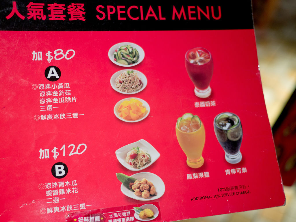 點選麵食類加價80元或120元升格為套餐(可選小菜和飲品)