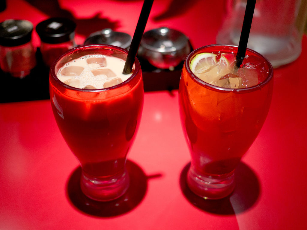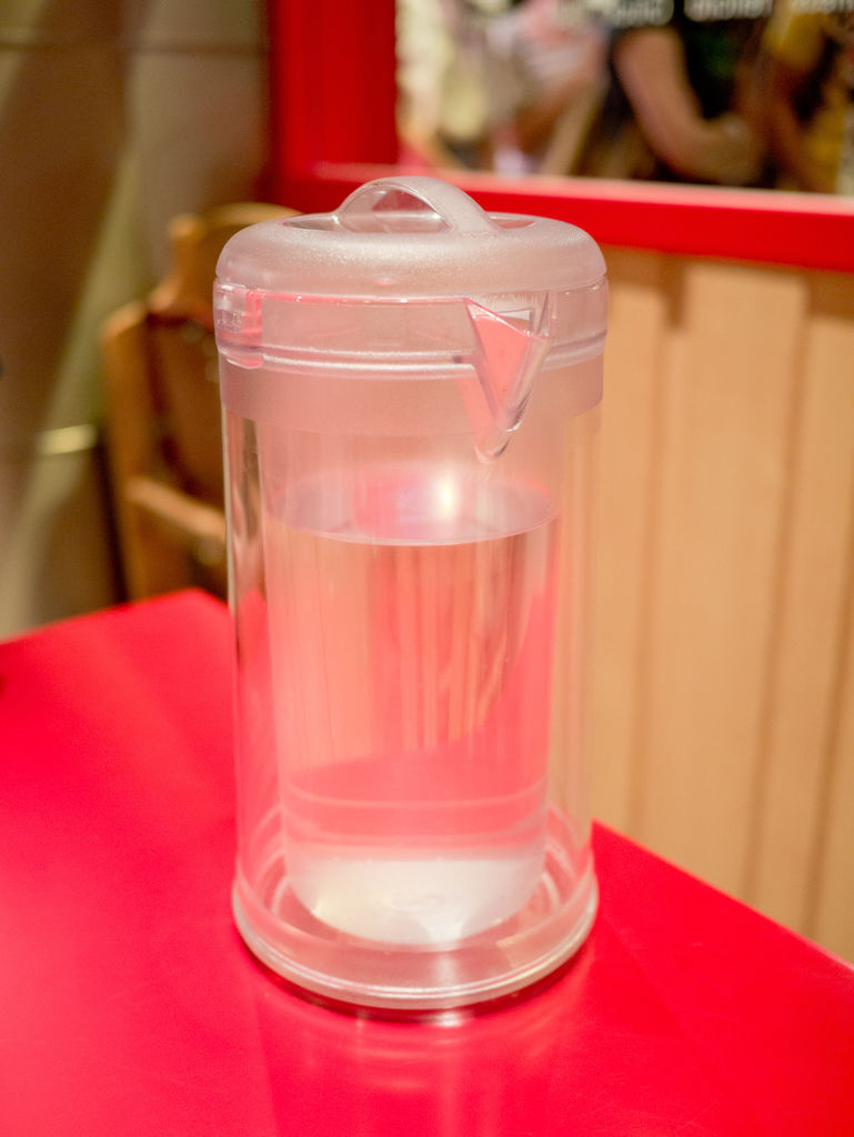 裝飲料的杯子也是紅色的,有些厚度,服務人員點餐時會貼心詢問是否需去冰。